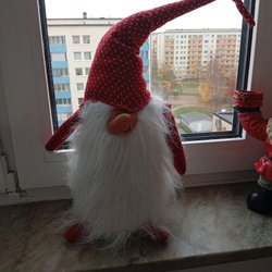 En söt liten tomte med randig mössa och grått skägg. Perfekt för att sprida julstämning i hemmet!