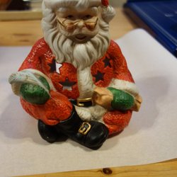 En stor och fin tomte med plats för värmeljus som ger ett behagligt sken. Litet färgskav på byxorna, se bild. I övrigt i bra skick.