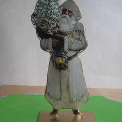 Träfigurin: Skidåkande tomte med vind i håret.