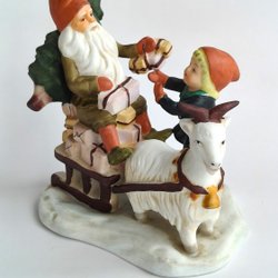 En söt prydnadstomte som sitter på en get. Perfekt som dekoration under julen eller året om.
