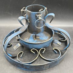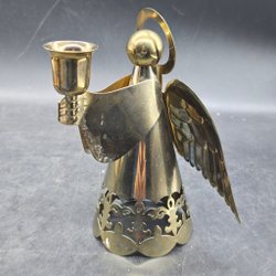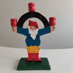 En dekorativ träljusstake i form av en tomte. Den har tre ljushållare.