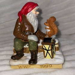 Denna figur föreställer en tomte som håller en hare. Perfekt för samlare eller som en dekorativ detalj.