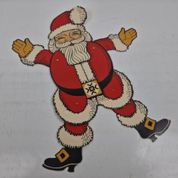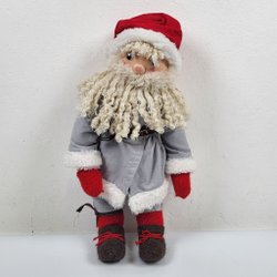 Jultomte figurin i polyresin med käpp & korg - Juldekoration - Tomte - Vintage