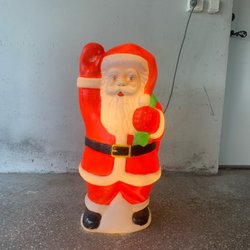 Juldekoration i form av en tomte med säck liten skada på handen . Se bild. 13 cm hög och 15 cm bred.