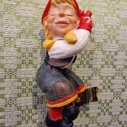 En charmig sovande tomte från Candy Design Norway, placerad på en sten. Perfekt som en dekorativ detalj i hemmet eller som en unik present.