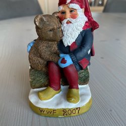 En charmig tomtefigur från WWF, utgiven år 2008. Designad av Bob Hersey. Perfekt för juldekoration eller samlare.