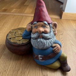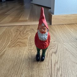 En söt rolf berg tomte med röd luva och vitt skägg. Perfekt för att dekorer i hemmet.