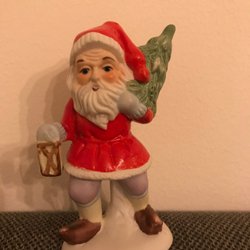 En söt liten jultomte som håller en gran och en lykta. Perfekt som juldekoration. Höjd 13 cm.