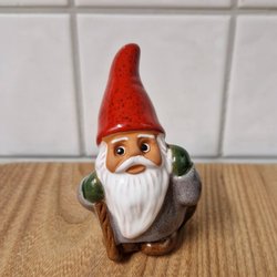 En charmig tomte som bär ett paket, designad av Ewa Jarenskog, JIE Sweden.