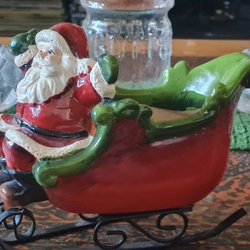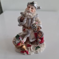 En söt jultomte figurin, perfekt för att sprida julstämning i ditt hem. Tomten är detaljrikt utformad med en röd dräkt, vitt skägg och guldfärgade detaljer. Han bär på en säck med julklappar och en liten present under armen. Placera den på en hylla, bord eller under granen för en festlig touch.
