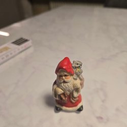 En söt jultomte prydnad med en säck full av presenter, en ekorre och en fågel. 13 cm hög och vikt 235 gr.