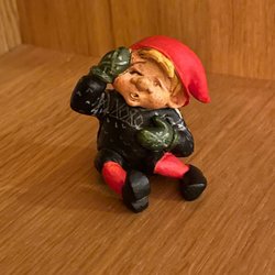 En charmig jultomte från Candy Designs Norway. Denna figur föreställer en tomte som håller en julgran. Perfekt för juldekoration.