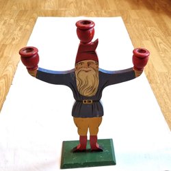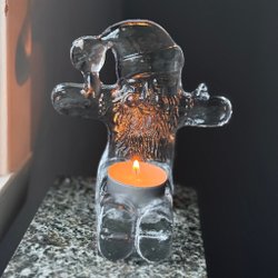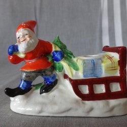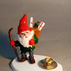 Sittande tomte, ljusstake för värmeljus. 10 cm bred, 8 cm hög. Ljus medföljer.