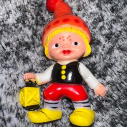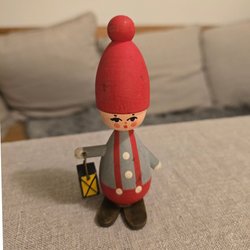 En charmig retro tomtefigur med en lykta i handen. Perfekt för att sprida julstämning i ditt hem!