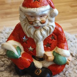 Söt jultomte i porslin. Märkt undertill med initialerna HW. Perfekt som juldekoration.