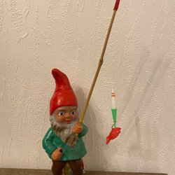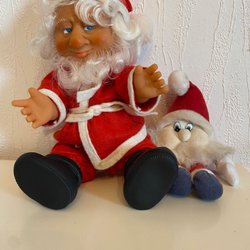 En charmig tomte tillverkad i plast / gummi med pipljud i. Västtyskland. Perfekt för att dekorera i hemmet i jul .