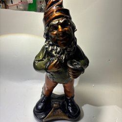 En söt handgjord jul tomte med röd luva, svarta skor och säck på ryggen. Den är gammal ifrån min farmors tid och är välvårdad.