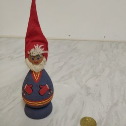 Tomte som är rätt han är rätt storgammal tror det är celoid huvud resten ver jag inte vilket material det är hanär rätt stor50cm lång