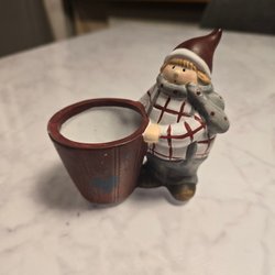 En söt tomte som bär en korg med bär. Höjden är cirka 10 cm. Perfekt för att dekorera hemmet nu till jul.