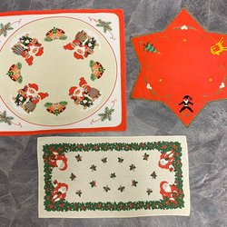 Den som önskar pynta hemmet inför jul och vill göra det på ett plånboksvänligt sätt kan förmodligen upptäcka många härliga fynd bland annonserna här på Tradera. I just denna sektion finns det mesta inom jultextil – från begagnade julbonader och virkade bordstabletter till tryckta jultextilier och handbroderade retrodukar med klassiska julmotiv. Man kan även hitta närmast oanvända gardinkappor, längder och matchande juliga gardinset, liksom stora bordsdukar med rödtonade mönster som kan passa utmärkt att lägga på julbordet. Till köket kan man också finna billiga jultextilier, såsom grytlappar, ugnsvantar, karottunderlägg, bordstabletter, brickband, förkläden och handdukar med tomtar på. Vill man fira in julen på traditionellt vis kan det ibland även finnas möjlighet att införskaffa begagnade julstrumpor till barnen eller en adventskalender att hänga på väggen. Utbudet på Tradera varierar ständigt, allt eftersom det dyker upp nya auktioner med oanvänd och begagnad jultextil av olika slag. Via en del annonser går det också att köpa billiga jultextilier direkt till fast pris.