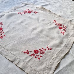 handbroderad i mörkrött garn