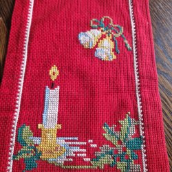 FANTASTISK FIN LÖPARE JULLÖPARE HANDBRODERAD KORSSTYGN GOD JUL RÖD RETRO VINTAGE. I fint begagnad skick.