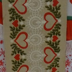 Mindre löpare med hängande hjärtan på brun botten, bomullsväv. Mått ca 24 x 56 cm, vikt 32 g.