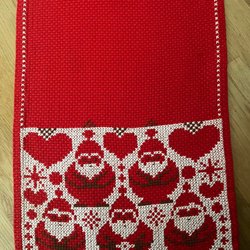 En vacker broderad duk med rött broderi. Perfekt som dekoration.
