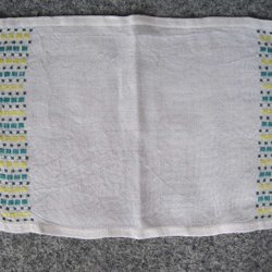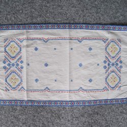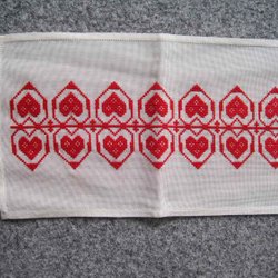 Broderad med bomullsgarn och lite guldtrådar på ljus broderivävCa 38 x 87 cm