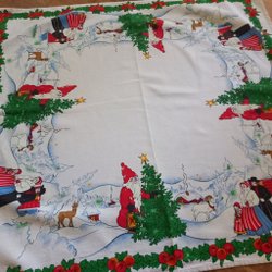 HANDBRODERAD JULDUK PÅ VITT LINNE MED KRANS AV