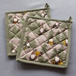 * två handvirkade grytlappar i mycket bra skick, ca 15x15 cm (se bild 7)