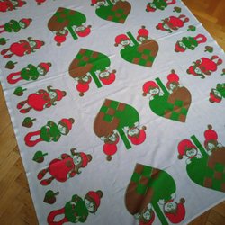 Stor äldre broderad vacker Julduk i bomull text God Jul