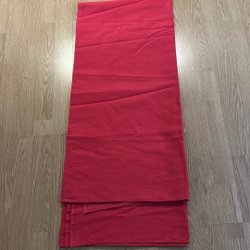 En fin vintage julduk med broderade detaljer. Duken är från den tid då man tog tillvara på de material man hade och är ihopsydd av två olika bomullstyger, grönt och rött och därefter har man broderat. Mycket charmig. 83 x 83 cm