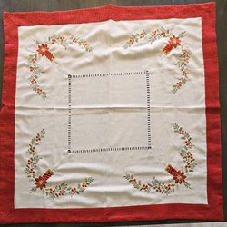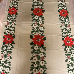 En fin julduk med ett blommigt mönster. Perfekt för att skapa en festlig stämning under julen.