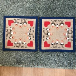 Ett set med en röd julduk och en servett.