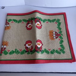 En fin julduk med ett motiv av tomtar och julgranar. Perfekt för att skapa en mysig julstämning. 68 x 68 cm
