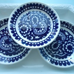 Kantad runtom med kornblå bomullstyg, sign på baksidan.