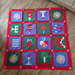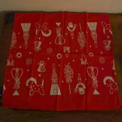 En söt julduk med broderi av häst och släde i ett vinterlandskap med texten "God Jul!". Perfekt för att skapa julstämning på julbordet med.