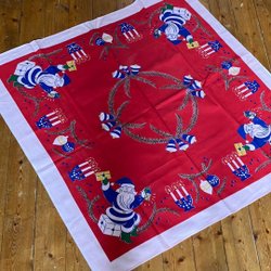 Retro duk med trevligt motiv. Mått 90x 84 cm. Fint skick, ej urtvättad eller blekt.