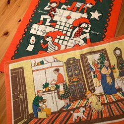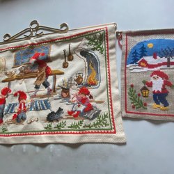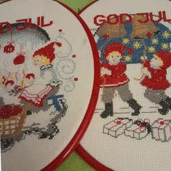 Två julbonader med tryck och broderi.