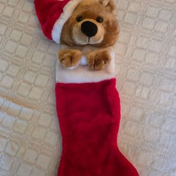 En söt julstrumpa i form av en nalle utklädd till tomte. Perfekt för att hänga upp och fylla med julgodis och små presenter!
