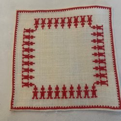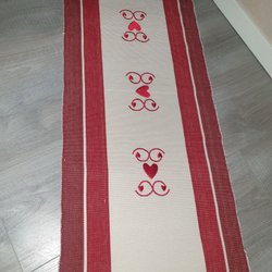 Röd julduk med tryckt motiv på bomullsväv
