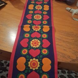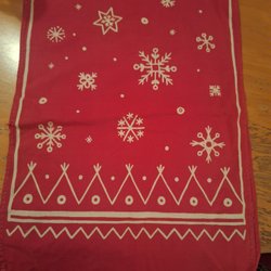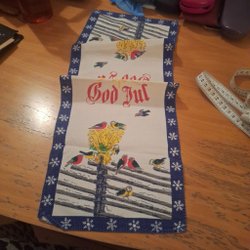 En riktigt retro, fyrkantig, julduk med tryckt motiv. Mycket fin.