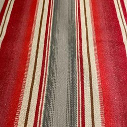 Jul duk med ränder i rött, svart och naturvit färg Handvävd Längd 2,40 m bredd 80 cm skick inga skador. Köpare står för frakten