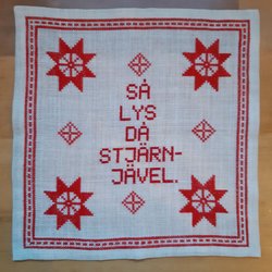 Broderad humor duk bonad jul kul text present gåva