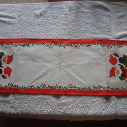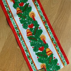 En tryckt jullöpare med cirkamåtten 90 x 27 cm. Tryckt på bomullsväv och med röd snedslå runtom. Säljs i befintligt skick. Titta noga på bilderna och förstora för mer information och skick! Använder Traderas vinnarmail, all betalningsinfo står där. Ansvarar ej för Schenkers hantering av paket. Betalning senast 3 dagar efter avslutad auktion. Samfraktar gärna om det är möjligt men begär i så fall samfrakt via Tradera eller medela mig innan du betalar så att det blir rätt fraktkostnad.