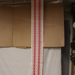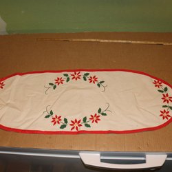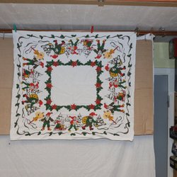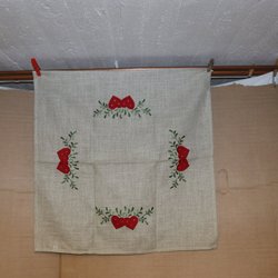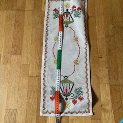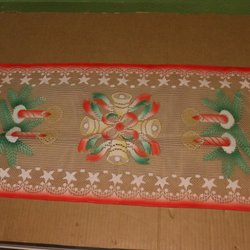 Äldre vacker vit duk vintage i dova harmoniska jul färger krafsen runt.