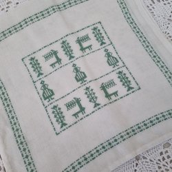 Alla dukar/bonader som jag har till försäljning är vintage och kan ha små skönhetsfläckar eller slitage som kommit med åren. Finns det större fläckar eller andra skavanker så framgår det i min text.