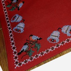En festlig julduk med ett vackert tryck med änglar och stjärnor. Perfekt för att skapa julstämning i hemmet.