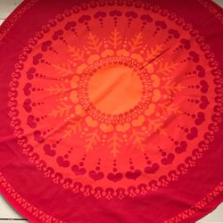 Retro julduk med tryckt mönster i rött, grönt och vitt. Perfekt för julbordet! Mått 90x90 cm - fint skick